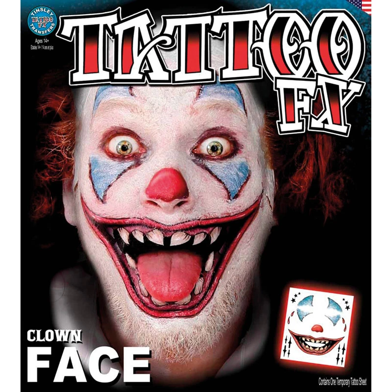 Tatouages éphémères de clownutilisation simple et rapide un maquillage spectaculaire en un clin d’oeil pour finaliser vos déguisement d’halloween