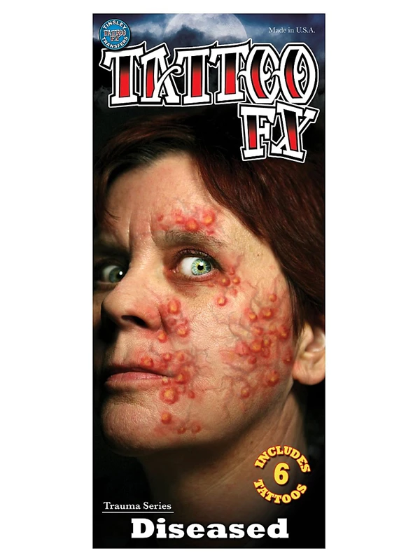 Tatouages éphémères de pustulesutilisation simple et rapide un maquillage spectaculaire en un clin d’oeil pour finaliser vos déguisement d’halloween